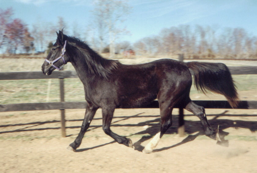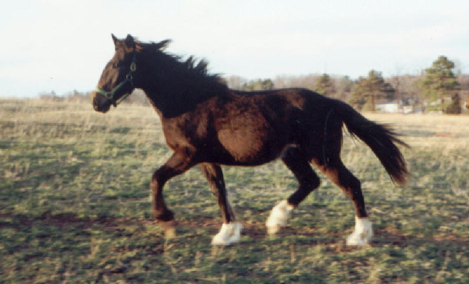 Black gelding with socks and a star. Big build and commanding presence.