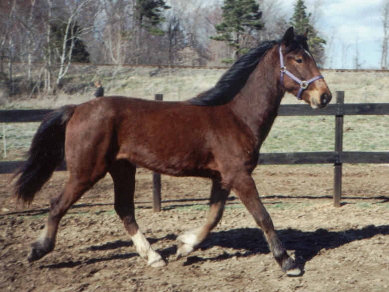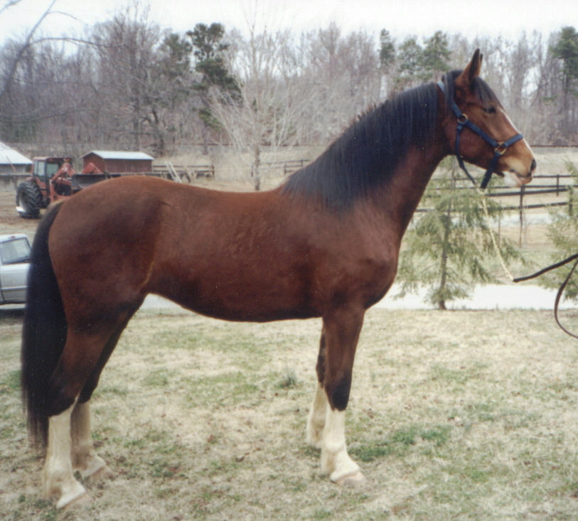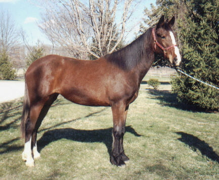Bay filly with four stockings, big blaze, excellent conformation and size. Keyma's Supreme Tango x Evermore's Hank